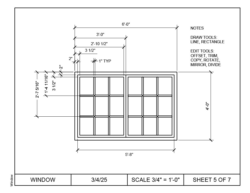 Select drawings utilizing skills learned in AutoCAD 2025 under the instruction of Vrushali Bharadwaj at FRCC. Skills include using drawing tools, editing tools, annotative objects, block creation, attribute creation, and use of design standards and principles.