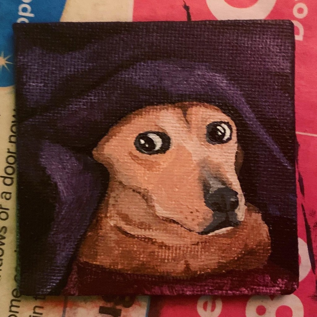 A coworker asked me to paint her a daschund in a cowboy hat.